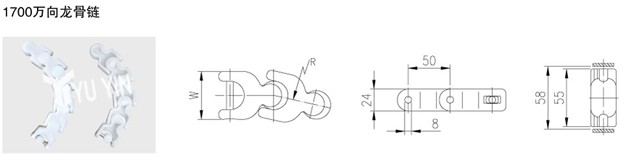 龍骨鏈板材質:POM,顏色為白色/綠色,銷軸為不銹鋼 包裝:20節(jié)/米