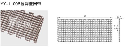 節距12.7mm,厚度6.3mm,開孔率40% 網帶材質:聚甲醛(POM) 網帶負載及溫度: POM≈2000N/M,4~80℃ 網帶重量:POM=4.5kg/m2 反向彎曲半徑:25mm |
